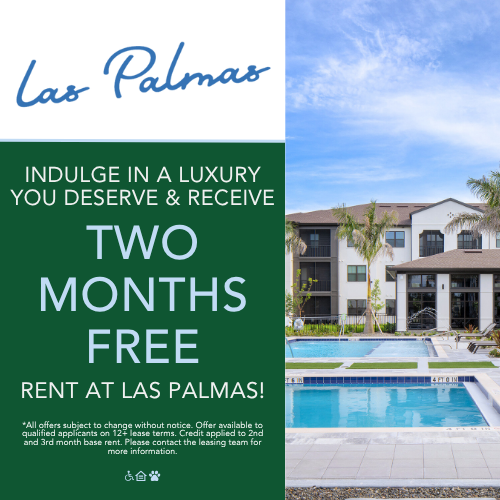 Take advantage of up to two months free on select homes at Las Palmas when moved in by August 31st!